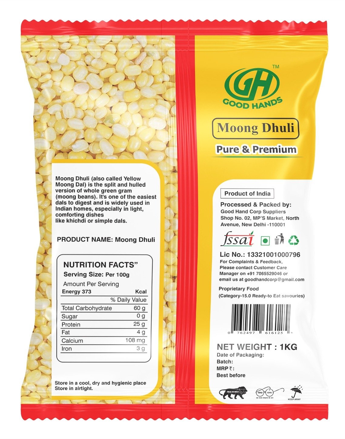 Packed under strict quality standards, Good Hands ensures purity, freshness, and consistent quality in every pack. Choose Good Hands Moong Dhuli for nutritious meals, authentic taste, and reliable quality in your kitchen.