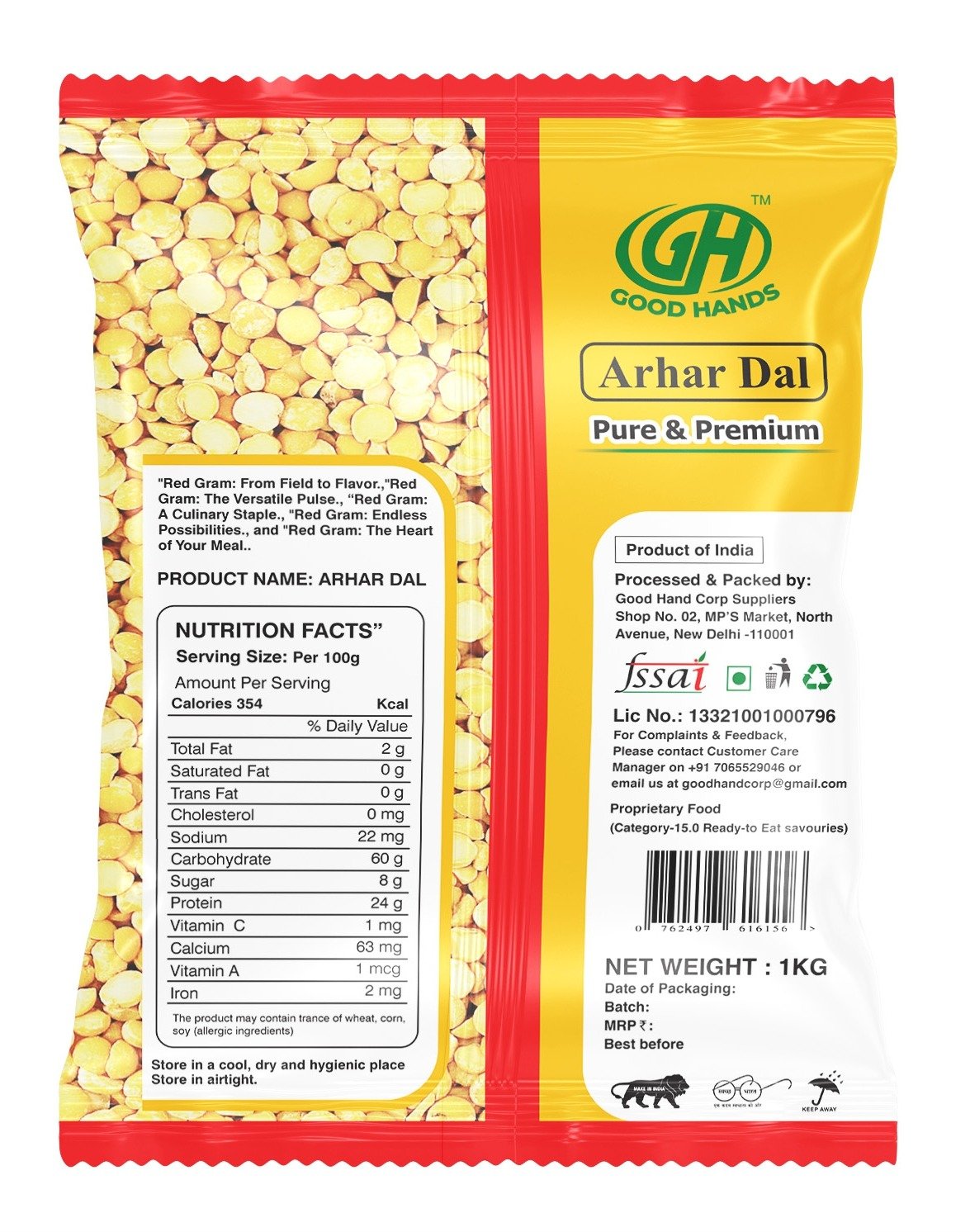 With a commitment to quality and freshness, Good Hands delivers premium pulses that meet high standards of purity and taste. Choose Good Hands Arhar Dal for wholesome nutrition, authentic flavor, and reliable quality in every meal.