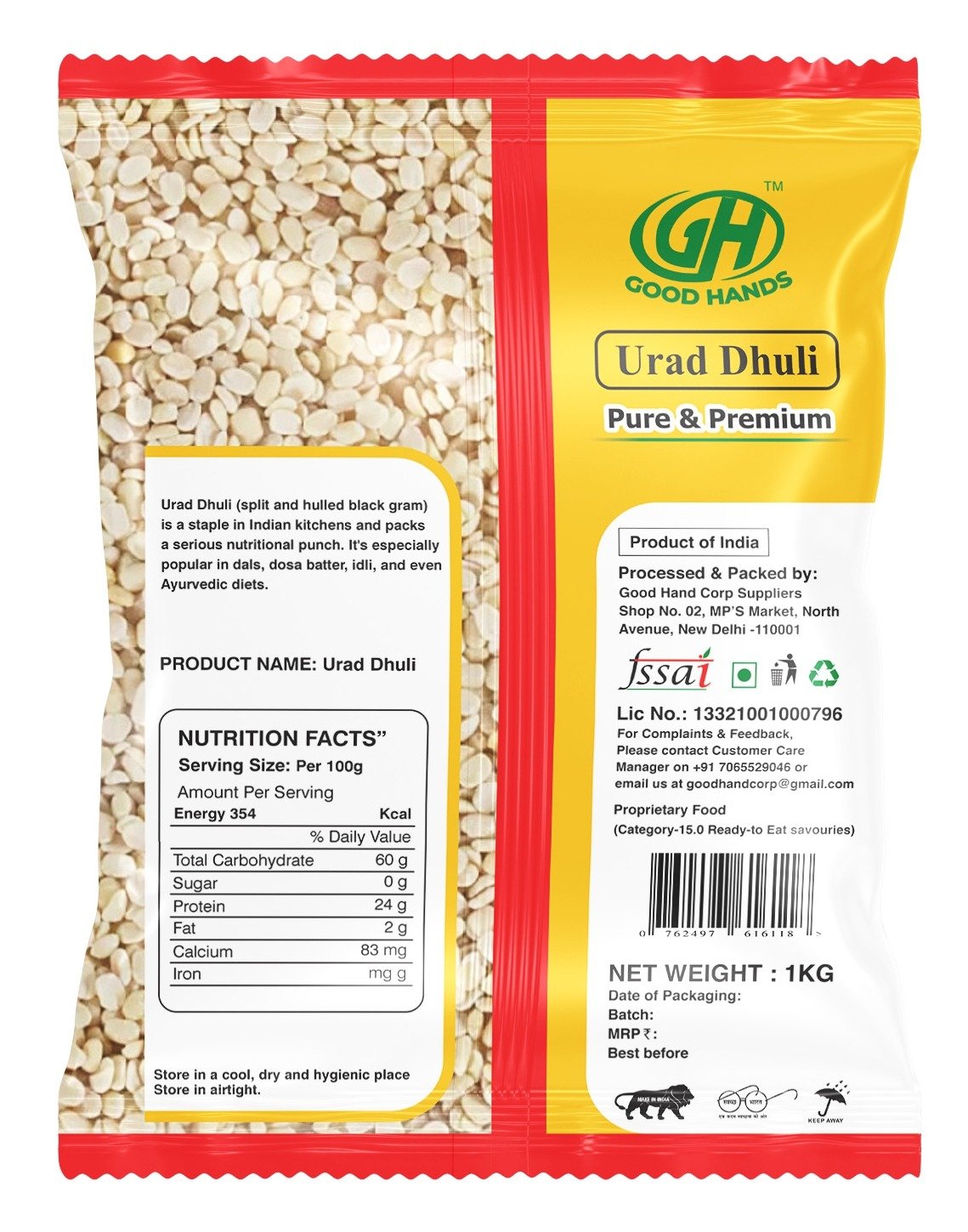 Good Hands Pure & Premium Urad Dhuli is carefully sourced and hygienically processed to ensure superior quality, purity, and freshness. Made from split and hulled black gram, this dal is widely used in Indian cuisine for its rich flavor and creamy texture.